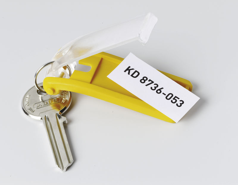 Mukana 6 avaimenperää (2 sinistä, 2 mustaa, 1 punainen ja 1 keltainen), joissa pysyvästi näkyvä merkintäalue.