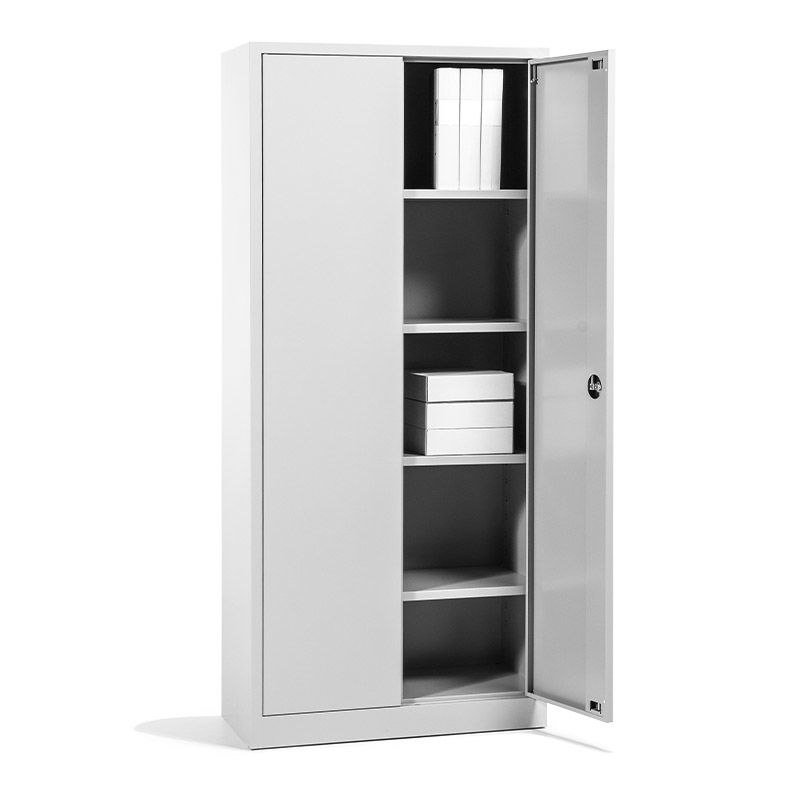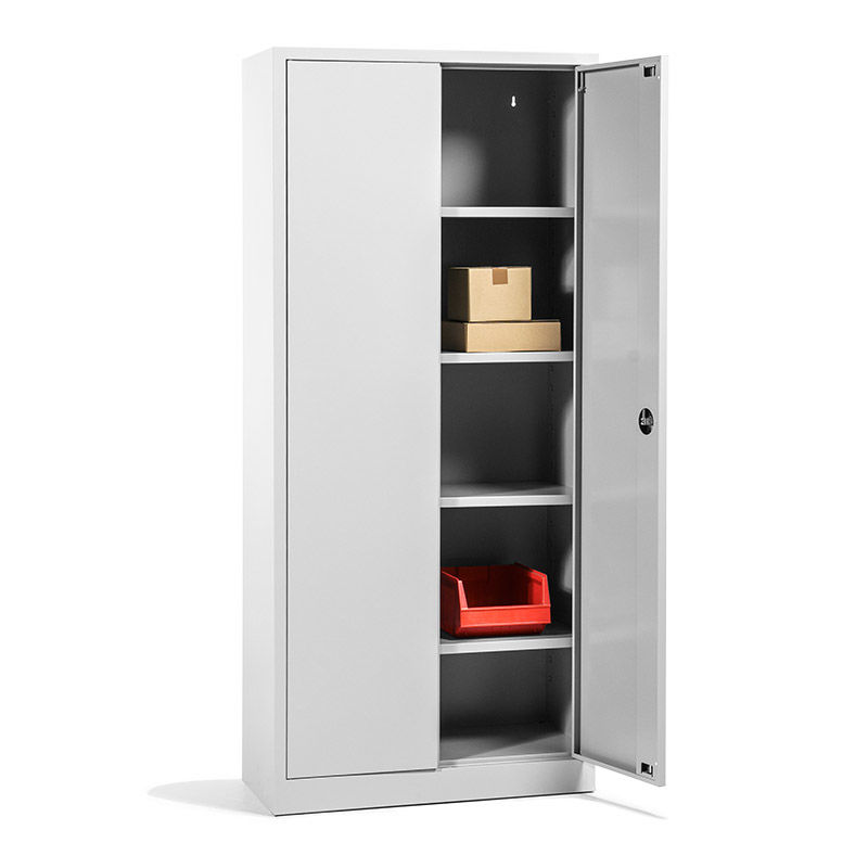Peltikaappi Siljan,LxSxK 800x380x1800 mm, harmaa, matta. Peltikaappi Siljan on täyshitsattu, lukittava säilytyskaappi neljällä hyllytasolla. Monipuolista Siljan kaappia voidaan käyttää moneen eri tarkoitukeen, kuten säilytyskaappina toimistossa, arkistossa tai varastossa, työpajakaappina, autotallikaappin tai työkalukaappina. Kaapissa on vakiona 4 kpl siirrettävää hyllytasoa, jotka voidaan asentaa 35 mm:n välein. (Lisätilauksesta lisähyllyjä). Peltikaappi kestää 50 kg/hyllytaso. Kaappi on lukittava, pitkäsalpalukko (2 avainta). Saatavilla kolmessa koossa ja neljässä värissä. Valitse sisustukseesi sopiva!