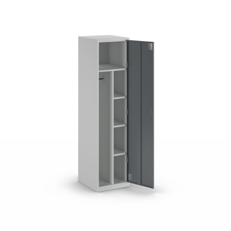 Alvina-siivouskaappi on luotettava säilytysratkaisu niin yliopistojen, urheiluseurojen kuin teollisuusympäristöjen pukuhuoneisiin ja sosiaalitiloihin.