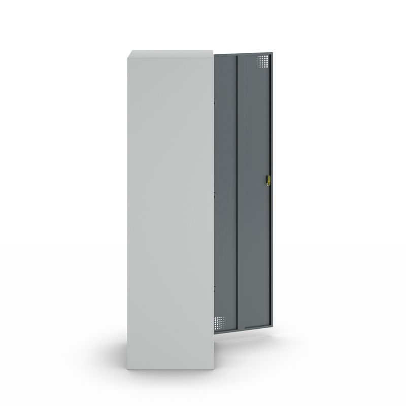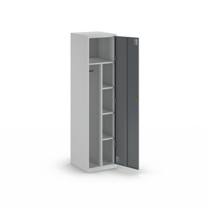 Siivouskaappi Alvina, väliseinä keskellä, vaaleanharmaa/basaltinharmaa, sylinterilukko. Tämä Alvina-siivouskaappi on erinomainen valinta erilaisiin säilytystarpeisiin. Erinomainen hinta-laatusuhde ja täydellinen yhdistelmä käytännöllisyyttä, vakautta ja modernia muotoilua.