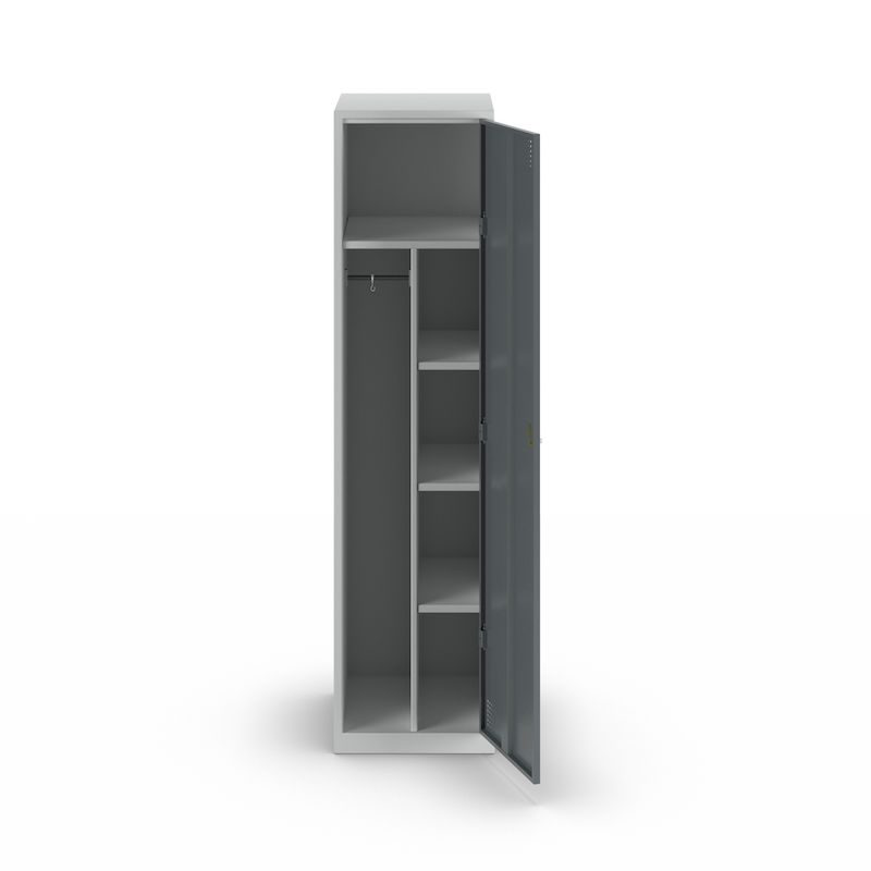 Alvina-siivouskaappi on luotettava säilytysratkaisu niin yliopistojen, urheiluseurojen kuin teollisuusympäristöjen pukuhuoneisiin ja sosiaalitiloihin.