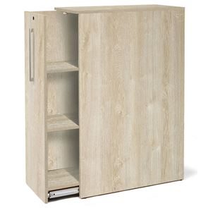 Apteekkarin kaappi Seattle, K 1250 mm, vasen, tammi. Säilytyskaappi, jota voidaan käyttää myös tilanjakajana kirjoituspöytien välissä. Kaappi on saatavana sekä avoin puoli vasemmalle että oikealle, lukittava ovi. Valmistetaan koivu-, tammi- ja valkoisesta laminaatista. Toimitetaan asennettuna. Laminaatti: Päällilevyssä on koivu-, tammi- tai valkoinen päällyste ja reunalista ABS-muovia. Pöydän pinta on kova ja erittäin naarmun- ja iskunkestävä. Väri on kestävä, eli se ei muutu vanhetessaan.