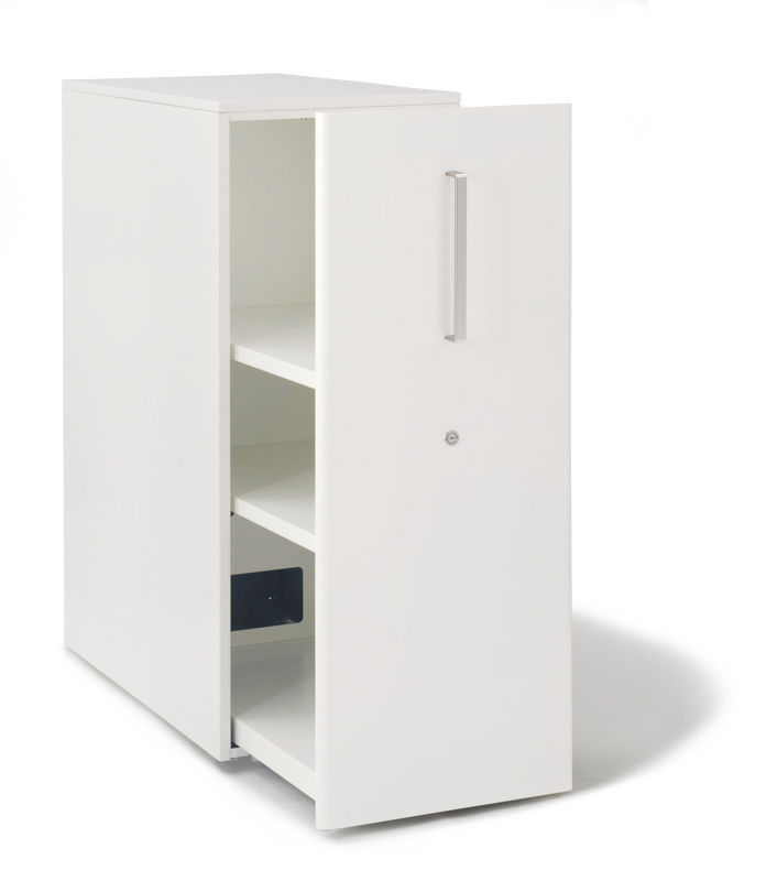 Apteekkarinkaappi Bisley Tower, oikea, valkoinen. Apteekkarinkaappi Bisley Tower on fiksu säilytysratkaisu toimistoihin. Sivukaappia voi käytännöllisesti käyttää myös tilanjakajana työpöytien välissä. Ideaalinen mapeille, papereille, asiakirjoille ja henkilökohtaiselle tavaralle. Toimitetaan kahdella siirrettävällä hykllytasolla. Peltiä.