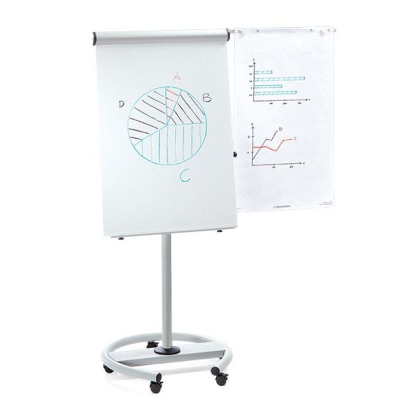 Siirrettävä fläppitaulu jalkaristikolla. Lehtiöiden puristuslista. Nopea lehtiöiden vaihto. Taulun leveys 680, korkeus 1040 mm. 2 kpl sivuvartta, kolmiosainen esittelypinta. Kätevä säilytyslista alareunassa. Patentoitu korkeussäätö kaasujousella ja turvalukituksella portaattomaan korkeussäätöön 1700-1900 mm. Pyöreä jalka ø 640 mm, aukko edessä. 5 lukittavaa pyörää. Kokonaiskorkeus maks. 1900 mm