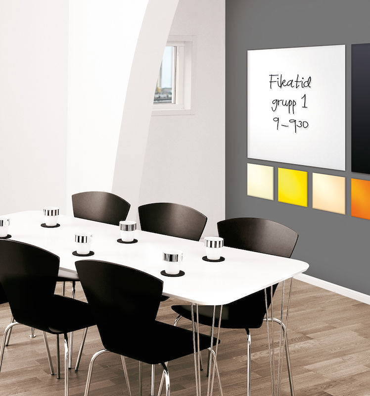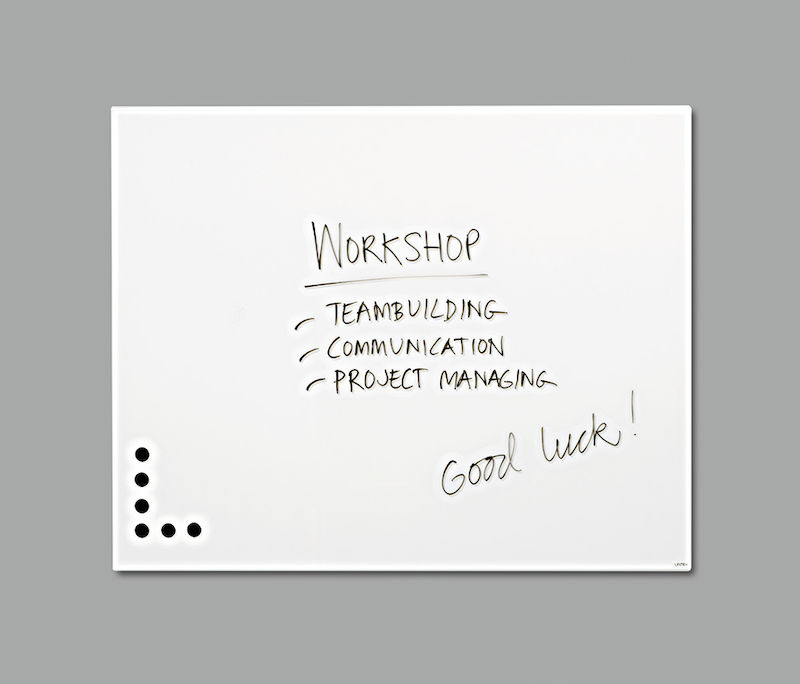 Lasinen kirjoitustaulu Lintex Mood, 1250x1000 mm. Ajattomasti muotoiltu, magneettinen. Läpivärjätyn optisen lasin paksuus 5 mm, peltipäällysteinen taustapuoli, piiloripustus.