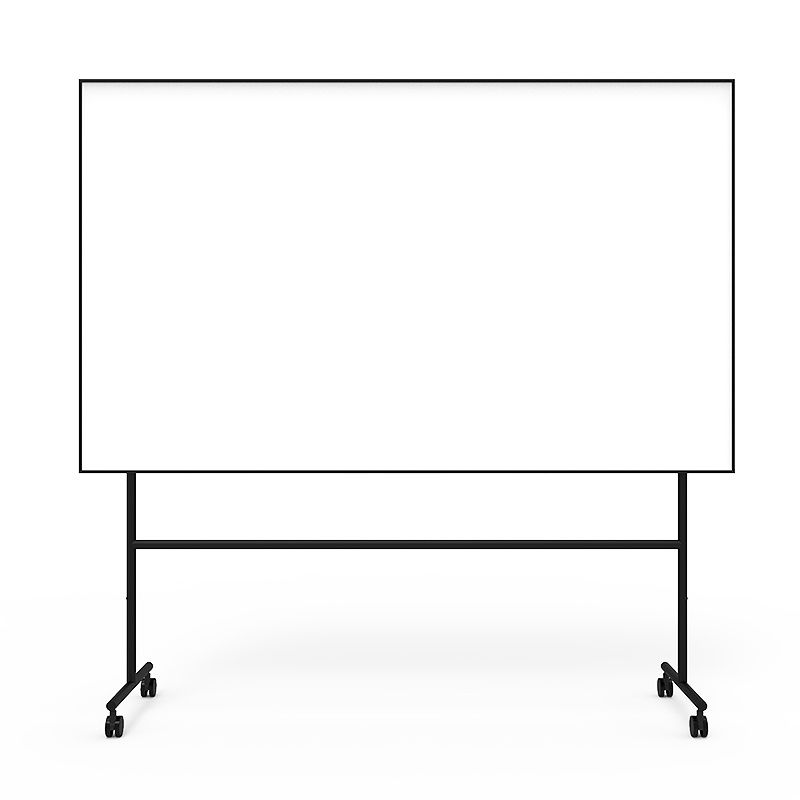 Tyylikäs valkotaulu tukevarunkoisella maalatulla jalustalla, jolle poikittaistuki antaa lisävakautta ja kääntyvät pyörät, joista kaksi jarrullisia. Yksipuolisten kirjoitustaulujen taustapuoli on maalattu, joten se sopii kaikkiin ympäristöihin.