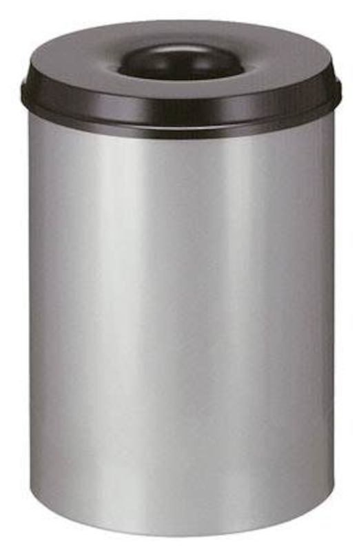 Roskakori, joka sammuu itsestään. 30 l, korkeus 470 mm, hopea. Itsestään sammuvat paperikorit estävät tulipalon syttymisen. Runko teräspeltiä, pinnoitettu värillisellä muovilla.