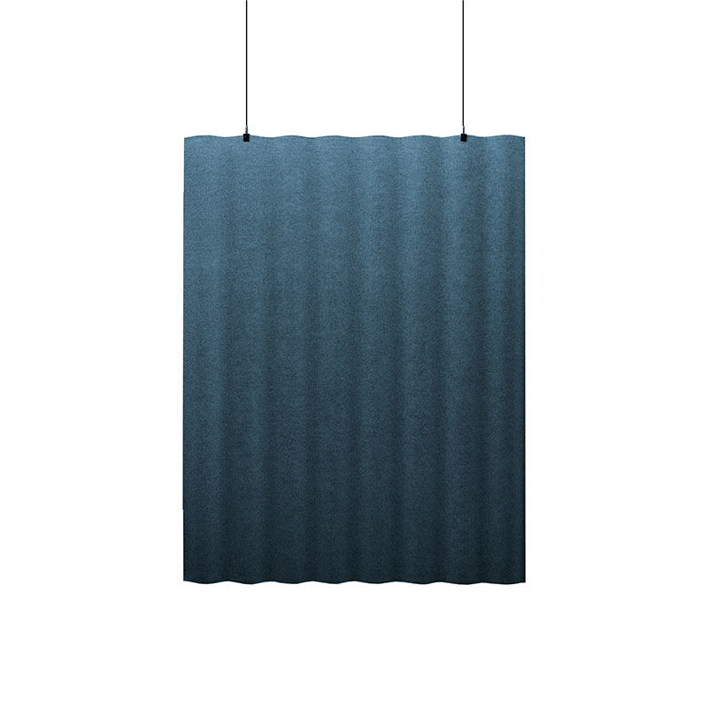 Akustiikkalevy Scala, ripustettava, pystysuora, PxLxS 1207x1600x60 mm, sininenAkustiikkalevy Scala ripustetaan roikkumaan katosta levyn yläreunaan kiinnitettävän huomaamattoman vaijerin avulla. Mustat ripustuskiinnikkeet ja vaijerit sisältyvät toimitukseen. Akustiikkalevy on kangaspäällysteinen kummaltakin puolelta ja moduulit ovat valmistettu muotoon puristetuista paneeleista ääntä absorboivalla ytimellä. Vapaasti riippuva akustiikkalevy auttaa luomaan miellyttävämmän äänimaiseman esimerkiksi toimisto- tai ravintolatiloissa. Levyn muoto on saanut vaikutteita aaltolevyjen muodosta, joka rakentuu sinikäyrään. Sinikäyrä luo luonnollisia ilmakäytäviä tuotteen taakse, mikä puolestaan parantaa tuotteen äänen absorbointikykyä. Sinikäyrään perustuvan muotoilun ansiosta akustiikkalevyllä Scala on suurempi ääntä absorboiva pinta kuin täysin sileällä tuotteella. Scala on osittain valmistettu kierrätetystä ylijäämätekstiilistä. Saatavilla 6 värivaihtoehtoa, kangas Blazer.