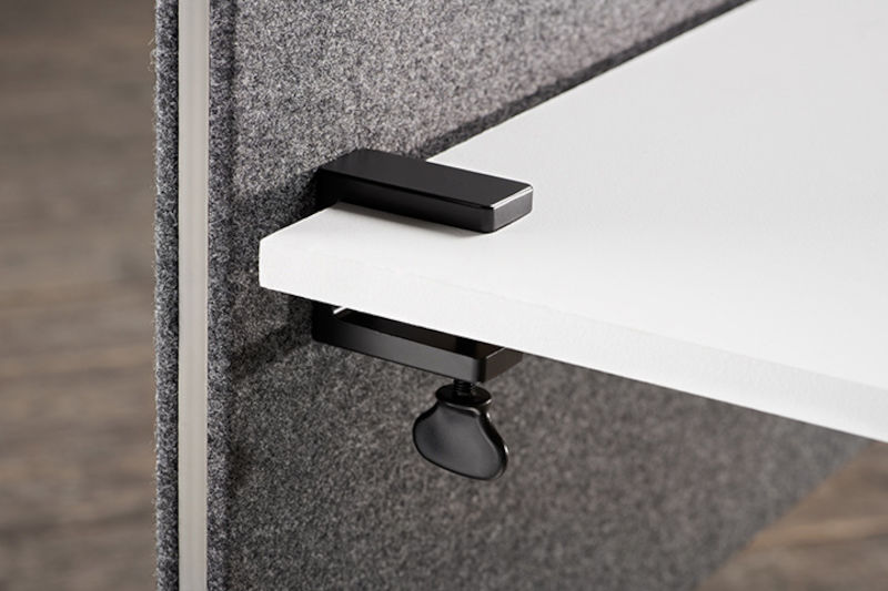 Bordsbeslag Ease frontmonterad till Edge bordsskärm, svart. Passande Edge Plus Bordskärm. Max skivtjocklek 35 mm.Passar bordsskiva med tjocklek: 16-35 mm