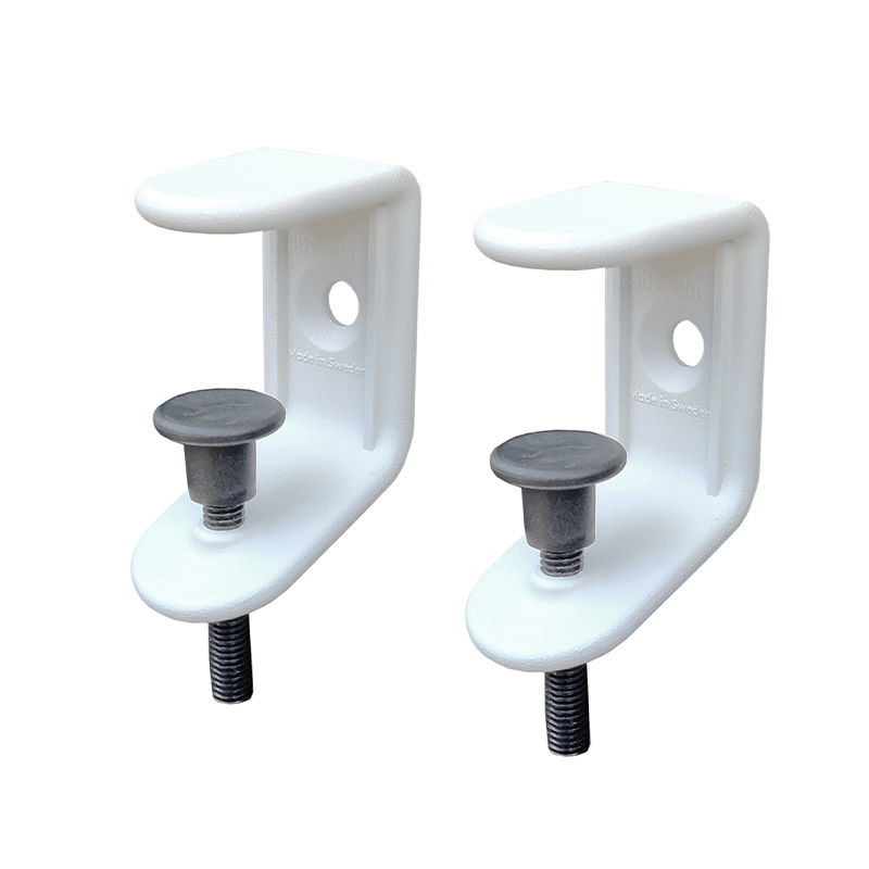 Pöytäkiinnike pöytäsermiin Softline, roikkuva. 2 kpl pöytäkiinnikkeitä per pakkaus. Jokaista sermiä kohden tarvitaan 2 kpl kiinnikkeitä.