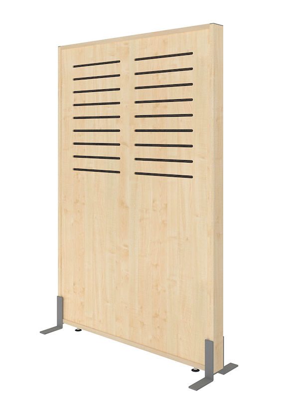 Kangasverhoiltu Silence sopii myös ilmoitustauluksi. Kangas on vaaleanharmaa. Sermin puulajivaihtoehtoina ovat koivu tai valkoinen laminaatti.