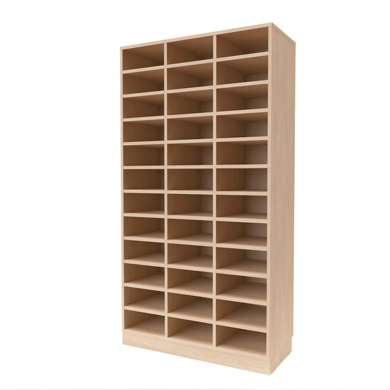 Postituskaappi Jorun, lattiamalli, 36 lokeroa, koivu. Postituskaappi mahdollistaa postin tehokkaan lajittelun hetkessä. Valikoimassamme on leveitä ja kapeita malleja, pyökki-, koivu- tai valkolaminaattia. Käytännöllinen ulosvedettävä taso, johon voit laskea tavarat lajittelun ajaksi. Kaapin alaosa on lukittava. Voit myös valita jalat sokkelin sijaan. Lisäksi lokerot voidaan varustaa lukittavilla ovilla. Jos tarvitsettekin enemmän lokeroita voit ostaa ylimääräisen hyllytason. Hyllyt toimitetaan asennettuina.