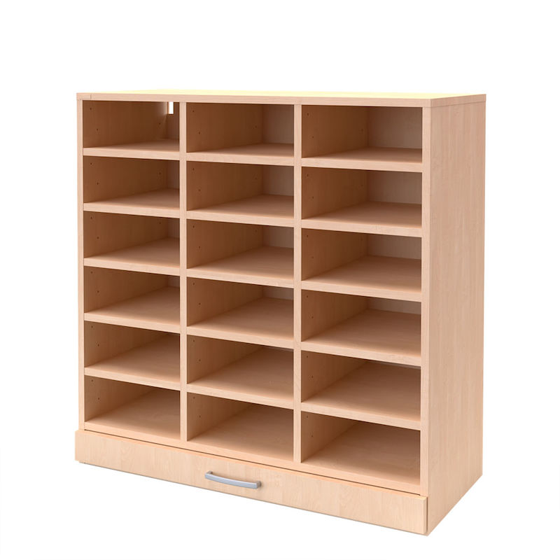 Postituskaappi Jorun, seinämalli, 18 lokeroa, koivu, mahdollistaa postin tehokkaan lajittelun hetkessä. Seinälle asennettava postitushylly vapauttaa lattiatilaa. Valikoimassamme on leveitä ja kapeita malleja, pyökki-, koivu- tai valkolaminaattia. Hyllyn alaosass on käytännöllinen ulosvedettävä taso, johon voit laskea tavaroita.