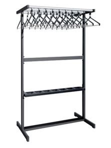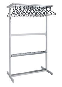 Vaatenaulakko, kaksipuolinen, sisältää vaateripustimet, hopeanvärinen, ilman sateenvarjotelinettä. Sisäänkäyntialue on jokaisen yrityksen käyntikortti. Älä unohda hyvän ensivaikutelman merkitystä. Nykyaikaisen yrityksen tulisi huomioida myös täällä toimivan ja kauniin muotoilun merkitys. Tuet ja runko jauhemaalattua terästä. Profiilit alumiinia, hopeaeloksoitu. Hattuhylly ja 38 takkikoukkua. Lukittavien kääntyvien pyörien (lisävaruste) ansiosta vaateripustustelineet voidaan siirtää sinne, missä niitä tarvitaan. Takkikoukut ja vaateripustimet laadukasta muovia, antrasiitti.