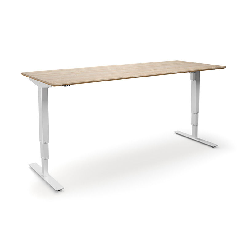 Sähköpöytä Atlanta Trend, suora taso, P 2000 x L 800 mm, tammi/valkoinen. Nosto 1 moottorilla, maks kuormitus 150 kg tasaisesti jaettuna. Säädettävä K630-1280 (iskunpituus 650 mm) nopeus 25 mm/s, runko maalattu valkoiseksi, hopeiseksi tai mustaksi. Taso on päällystetty pyökki-, koivu-, tammi- tai valkoisella laminaatilla, reunalista ABS muovia. Taso on kova ja naarmunkestävä. Väri on tasainen, eikä muutu vanhetessa.