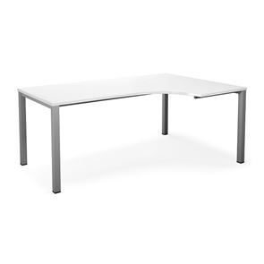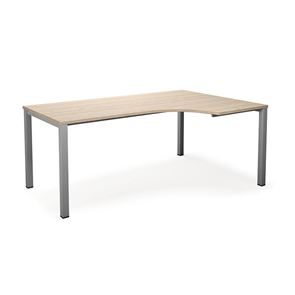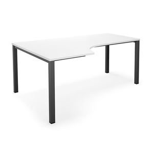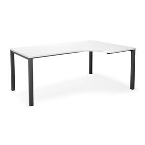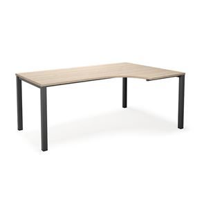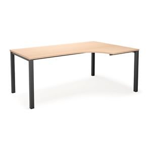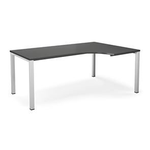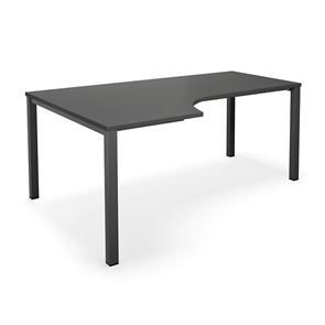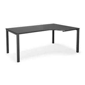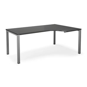 Kulmatyöpöytä Duo-U, oikea, PxL 1800x1200 mm, tummanharmaa/musta. Pöytätaso laminaattia, neliskulmaiset jalat. Pöydän korkeus on 740 mm, pöytälevy mukaan lukien. Kirjoituspöytää voidaan täydentää riippulaatikostolla.