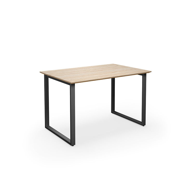 Pöytä DUO-O Trend, suora levy, suorat kulmat, PxL 1200x800 mm, tammi/musta. Moderni pöytä vakaalla jalustalla ja helposti puhdistettavalla laminaattilevyllä, joka sopii niin toimistoon, konferensseihin kuin lounastilaankin.