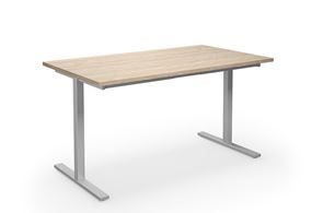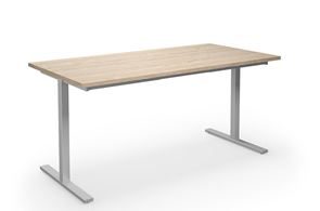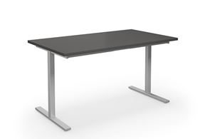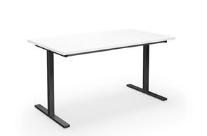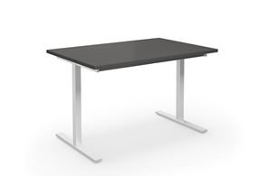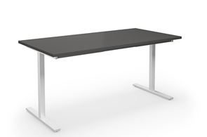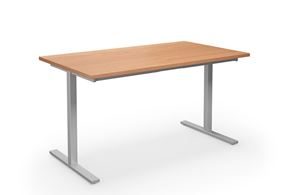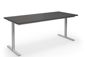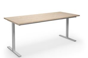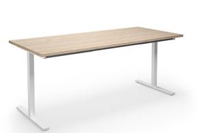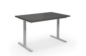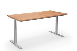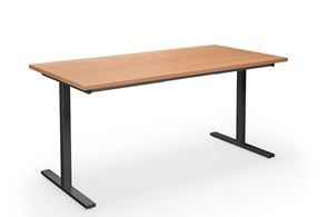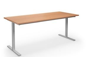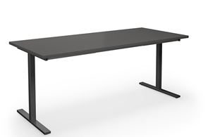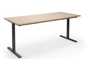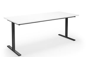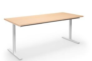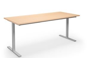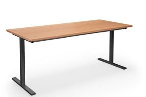 Pöytälevy on 25 mm paksu, se on malliltaan suora ja helppo puhdistaa. Jauhemaalattu T-jalusta tekee pöydästä tukevan.