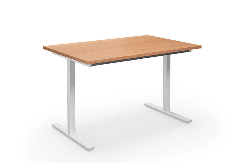 Pöytä Duo-T, suora levy, PxL 1200x800 mm, pyökki/valkoinen. Moderni työpöytä tukevalla T-mallisella jalustalla ja helposti puhdistettavalla pöytälevyllä laminaatista.