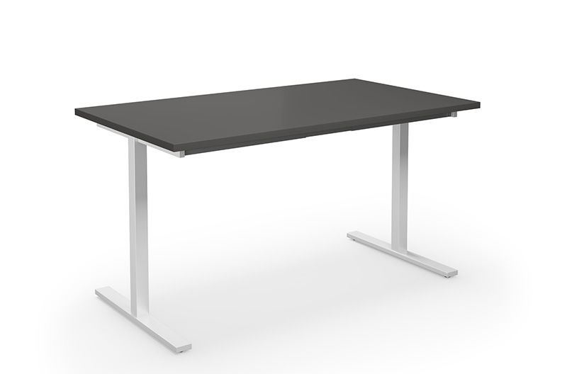 Pöytä Duo-T, suora levy, PxL 1400x800 mm, tummanharmaa/valkoinen. Moderni työpöytä tukevalla T-mallisella jalustalla ja helposti puhdistettavalla pöytälevyllä laminaatista.