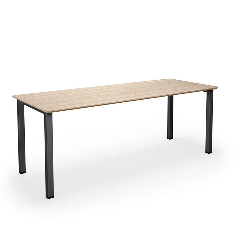 Pöytä Duo-U Trend, suora levy, runda hörn PxL 2000x800 mm, tammi/musta. Moderni pöytä vakaalla jalustalla ja helposti puhdistettavalla laminaattilevyllä, joka sopii niin toimistoon, konferensseihin kuin lounastilaankin.
