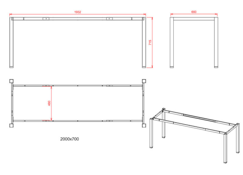 Pöytälevy on valmistettu 25 mm paksusta MDF-levystä, joka on pinnoitettu laminaatilla. Siinä on 10 mm reunalista ABS-muovista. Korkeus 740 mm sisältäen pöytälevyn.