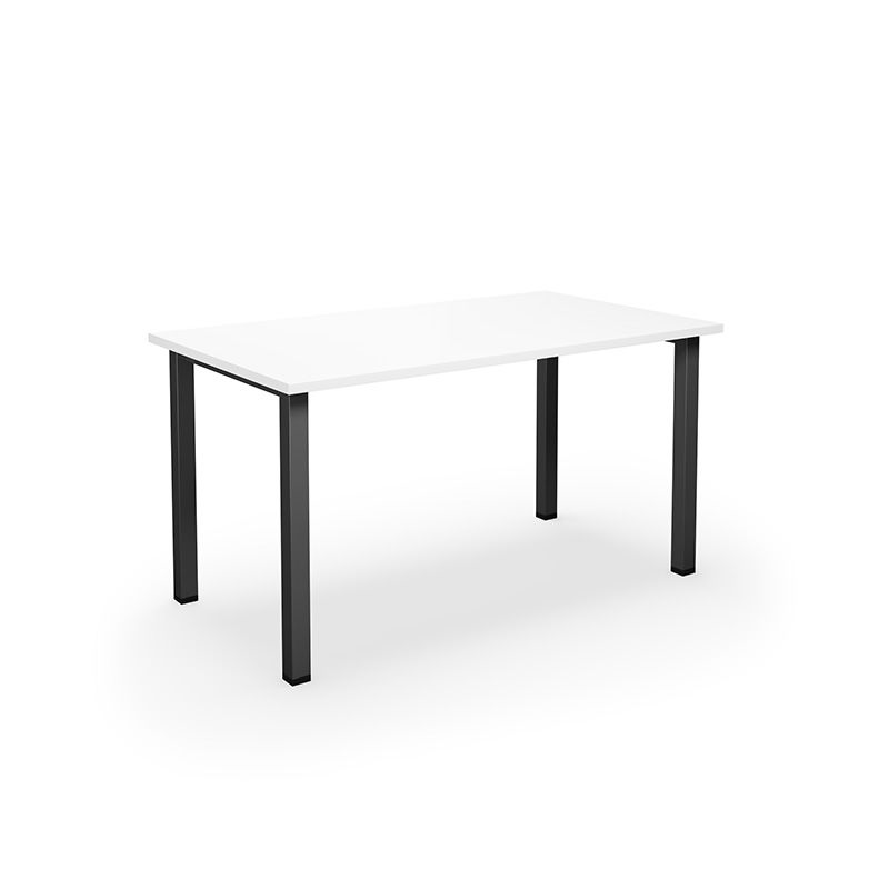 Pöytä Duo-U, suora levy, PxL 1400x800 mm, valkoinen/musta. Kirjoituspöytä laminaattitasolla neliskulmaiset jalat, korkeus 740 mm tasolla. Kirjoituspöytää voi täydentää riippulaatikostolla.