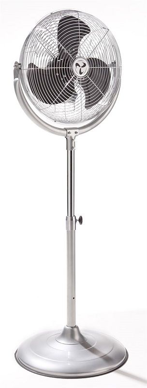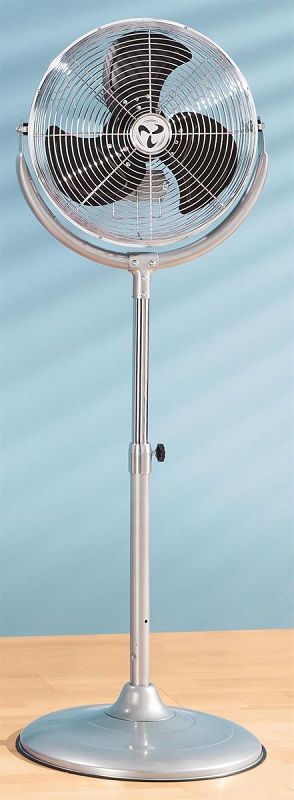 Lattiatuuletin, korkeussäädettävä, 3 puhallintehoa, alkaen 1 kpl. Väri: hopea. Suuri ilmatilavuus ja voimakas 3-portainen puhallin takaavat täydellisen jäähdytyksen myös suurempiin tiloihin. Suojakori kromattua terästä. Kaltevuutta voidaan säätää n. 160° kulmassa ilmavirran ohjaamiseksi ja lukita haluttuun asentoon. Portaaton korkeudensäätö välillä 1200 – 1470 mm. Jalustan Ø 450 mm.
