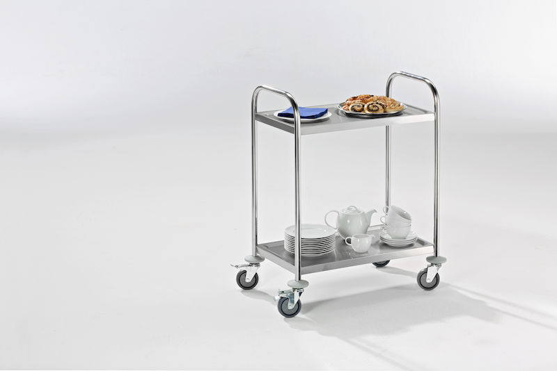 Tarjoiluvaunu Luna, 2 hyllytasoa, PxLxK 705 x 405 x 940 mm. Monipuoliset käyttömahdollisuudet keittiöissä, ruokaloissa tai toimistoissa. Vahvistettu pohja, jota ympäröi reunasuojus.
