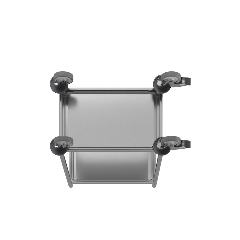 4 kuulalaakeroitua kääntöpyörää, joissa non-marking-umpikumirenkaat, pyörän Ø 100 mm. 2 pyörässä jarrut.