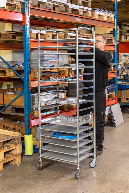 Tarjotinvaunu Fredi, tilaa 18 pellille, 600x440x1880 mm. Toimii mainiosti myös peltitelineenä.