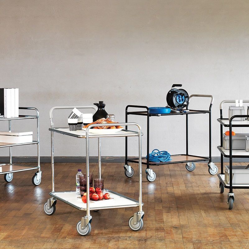Tasovaunu Gotland. Tasovaunua on saatavilla kahdella tai kolmella laminaattihyllyllä. Saatavilla eri värejä. Teräsrunko 4:llä 100 mm kääntyvälla pyörällä. Kestää 250 kg painoa. Kokonaismitat PxLxK 1020x555x965 mm. Korkeus ylimmälle hyllylle 770 mm. Tasoväli 540 mm. Toimitetaan osissa.