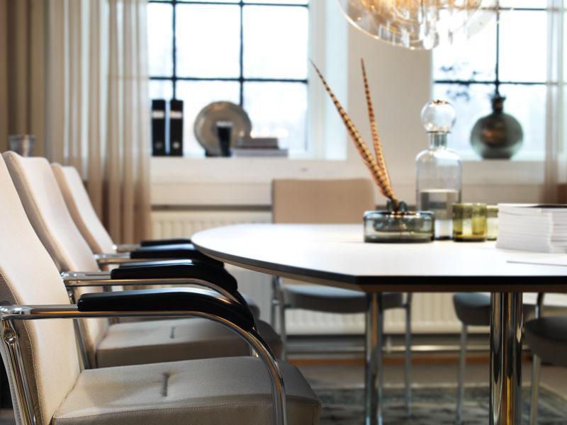Neuvottelupöytä Elips, korkeus 720 mm, LxS 3800 x 1200/800 mm, valkoinen/kromattu. Elips-kokouspöytä – saatavana 6 kokoa.