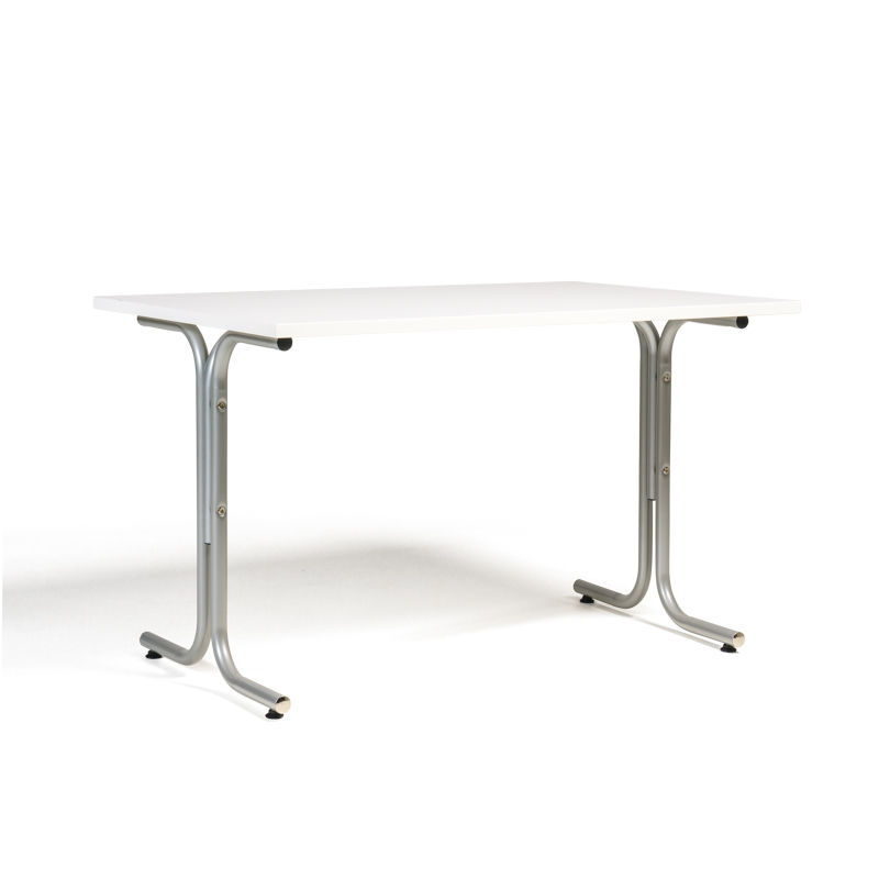 Ruokapöytä Vicky Square, PxL 1200 x 800 mm, valkoinen / hopea. Monikäyttöisiä, nelikulmaisia pöytiä useina eri kokoina. Säädettävät jalat.