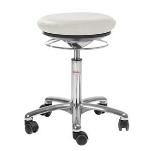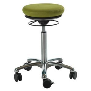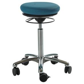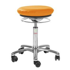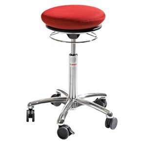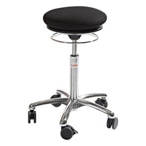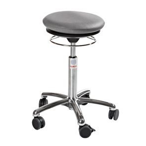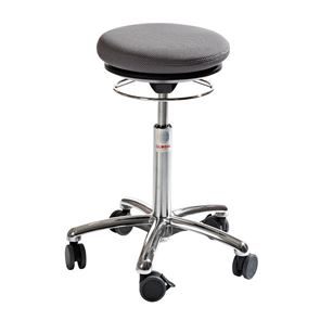 Pilatestuoli, musta keinonahka. Pilatestuoli alkuperäinen Dynair® istuintyyny treenaa selkälihaksia kun istut ja työskentelet ja antaa terveen ja voimakkaan selän. Kuminen istuintyyny täytetty ilmalla ja verhoiltu kankaalla tai keinonahalla. Jakkarassa rengaskahva, istuimen nopeaan ja helppoon säätöön. Toimitetaan ilmapumpulla istuimen täyttöä varten. Istuimen halkaisija: 330 mm. Alumiinirunko, Ø 500 mm. 5 pyörää, Ø 65 mm, kahdessa jarru. Istumakorkeus 52-71 cm.