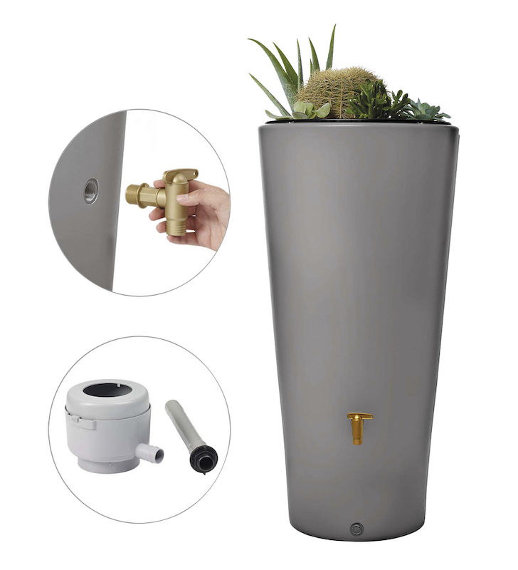 Sadevesiastia VASO Sigrid, UV-säteilyn kestävä ja säänkestävä, tilavuus 220 litraa, sinkinharmaa. Tämä tyylikäs sadevesisäiliö tekee vaikutuksen sileällä pintarakenteellaan ja modernilla värillään. Se tarjoaa kaksi hyödyllistä toimintoa mahdollistamalla sekä sadeveden hyödyntämisen että somistamisen. Irrotettavan, 20 cm:n syvyisen istutusalustan avulla voit tehdä sadevesisäiliöstäsi ainutlaatuisen katseenvangitsijan. Valitse vastuullinen puutarhan kastelu ja säästä arvokkaita luonnonvaroja ja ennen kaikkea lompakkoasi: kerää talteen sadevesi, jota tulee taivaalta joka tapauksessa ilmaiseksi. Astian tilavuus on 220 litraa, ja siinä on kaksi 19 mm:n (3/4″) kierreliitäntää vedenpoistoa varten. Niihin voit liittää esim. mukana toimitettavan laskuhanan tai letkusarjan (lisävaruste), ja niiden kautta voit tyhjentää jäljellä olevan veden ennen pakkasia. Erittäin tukeva ja kestävä – säänkestävät, UV-suojatut materiaalit takaavat pitkän käyttöiän ulkona. 4rain-tuotteissa kiinnitetään jo kehitysvaiheessa runsaasti huomiota vastuulliseen tuotesuunnitteluun. Tämä sadevesiastia on valmistettu kierrätysmuovista ja on 100-prosenttisesti kierrätettävä. Aitoa saksalaista laatua. Huomautus: Säiliö on tyhjennettävä kokonaan ennen pakkasten tuloa.