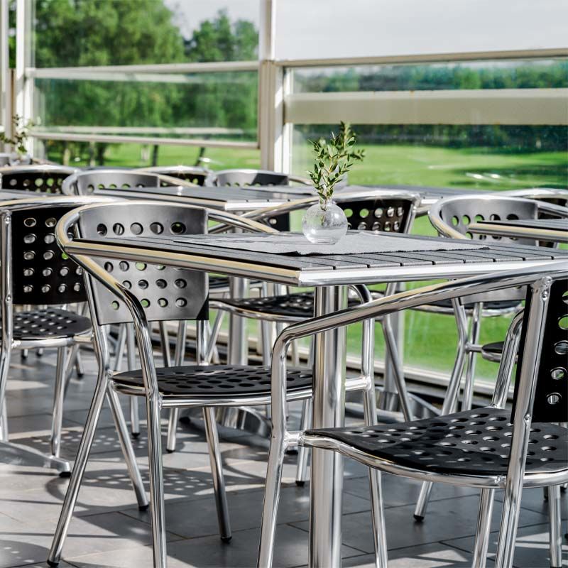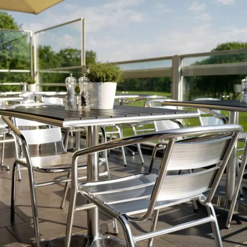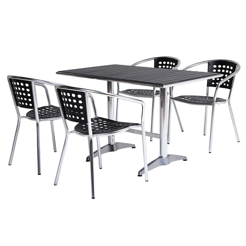 Terassipöytä Alfie on helppo, kestävä ja huoltovapaa ulkopöytä esimerkiksi kahvilan tai ravintolan terassille tai puutarhapöydäksi. Pöytä soveltuu hyvin myös vastaanotto- ja odotustiloihin. Kahvilapöydän runko on valmistettu alumiinista ja pöytälevy on nonwood pinnoitetta. Pöydän pinta on kestävä ja sen voi helposti pyyhkäistä puhtaaksi.