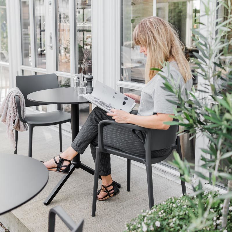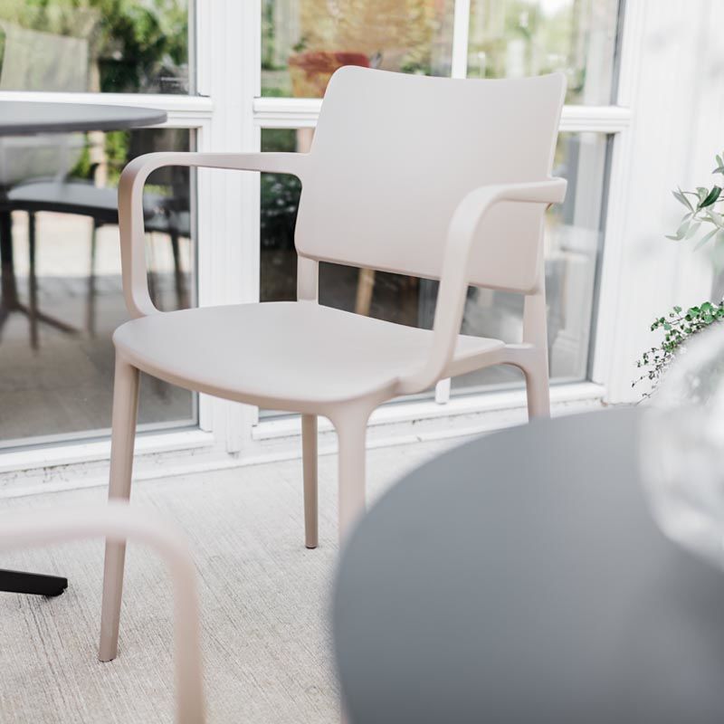 Tuoli Artin käsinojilla. Moderni muovituoli kauniilla designilla ja selkeillä sulautuvilla linjoilla. Tuoli on kevyt ja täten helposti siirrettävissä ja se on pinottava. Sen osat on valmistettu lasikuituvahvisteisesta polypropeenista. Kestävät yksityiskohdat tuolissa, takaavat vankan ja mukavan istumisen. Tuolin kaunis ja selkeä ulkomuotoilu on ajaton ja moderni ja se sopii moneen erilaiseen ympäristöön. Täydellinen sekä kotikäyttöön että toimistoihin. Sopii esimerkiksi toimiston taukotilatuoliksi, sosiaalitilan tuoliksi ja kotiin ruokatuoliksi tai parveketuoliksi. Tuolia voi käyttää sekä sisällä että ulkona ja se on UV-suojattu. (Otathan tuolin kuitenkin sisäsäilöön talvella ja suojaat / puhdistat rankkasateiden jälkeen. Näin takaat pidemmät käyttöiän). Saatavilla neljässä eri värissä. Tuoli Artin käsinojilla myydään 4 kappaleen pakkauksissa.