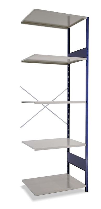 Varastohylly Gerdmanshylly, jatko-osa, LxSxK 965x700x3000, avoin, sininen/harmaa. Väri: sininen hyllytikas ja harmaat hyllytasot.