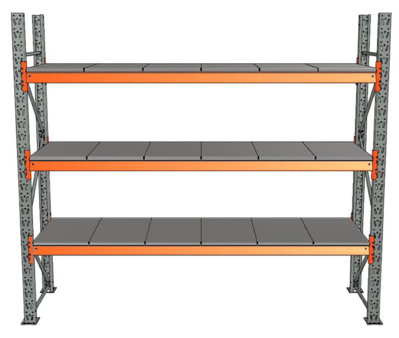 Erittäin jykevää laatua. 90 mm:n levyiset ristikkotuetut tolpat ja Z:n muotoiset kannatinpalkit. Rakenne muistuttaa lavahyllystöä.