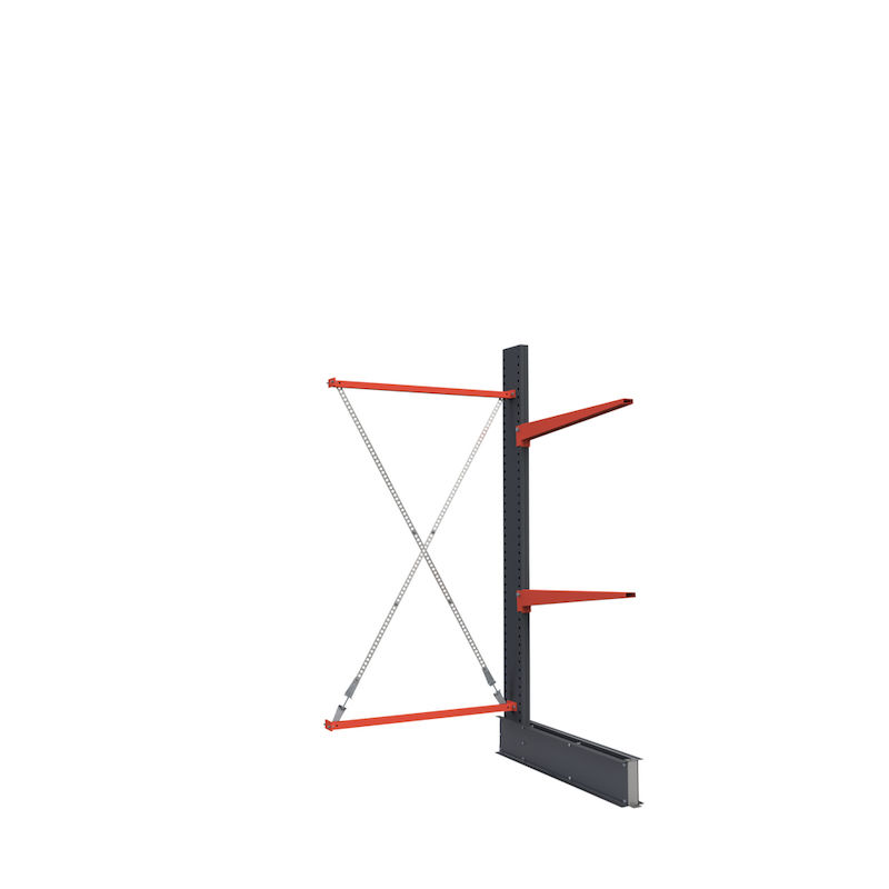 Ulokehylly Attillo, yksipuolinen, KxL 2500 x 2000 mm, varsi 1000 mm, jatko-osa. Ulokehylly, mukana telineet, jalat, varret, pitkittäis- ja ristituet sekä betoniruuvit lattia-asennukseen.