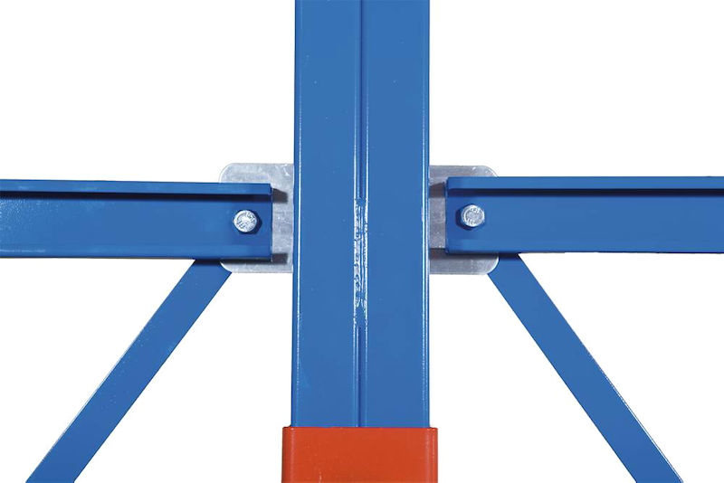 Ulokehylly Tellus, tukiosa, jossa ristikko, kk 2000 mm. Tellus-ulokehylly on osa johtavan eurooppalaisen valmistajan suurta ulokehyllyjärjestelmää. Järjestelmä täyttää kaikki mm. materiaalivalintaa, mitoitusta ja testausta koskevat eurooppalaiset turvallisuusvaatimukset ja määräykset.