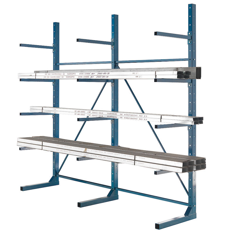 Ulokehylly Ziske, korkeus 2500 mm, varren pituus 500 mm. Sopii melko kevyille tavaroille, kuten listoille, muoviputkille, kevyemmille terästavaroille jne.