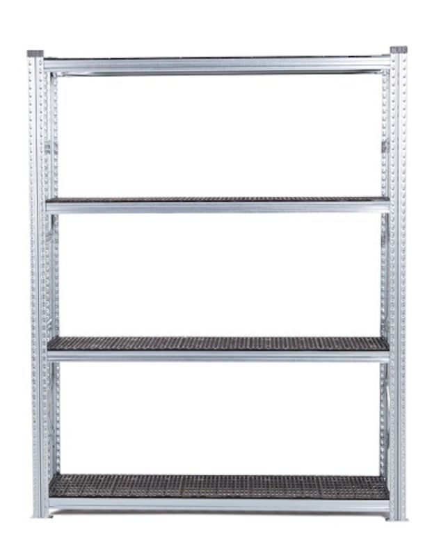 Teräshylly Flex, K 1972 mm perusosa, LxS 1576x320 mm, 4 kpl musta hyllytaso. Joustava hyllyjärjestelmä sinkittyä terästä, useita käyttömahdollisuuksia monenlaisiin työympäristöihin. Alhainen omapaino - suuri kuormitus, 135-350 kg/hyllytaso. Siirrettävät palkit, hyllyt mahdollista asentaa 33 mm välein. Hyllytasoja eri työympäristöihin. Helppo koota (ei pultteja tai muttereita). Voidaan käyttää molemmilta puolilta, ei tarvita ristikkoa. Päädyt toimitetaan koottuna, kantopalkit ja metallijalat sisältyvät jokaiseen yksikköön. Muoviset hyllytasot ovat rei’itetty, joten ne toimivat myös ympäristöissä, joissa on sprinklerijärjestelmä jolloin vesi valuu hyllytasojen läpi. Kaikki muoviset hyllytasot ovat elintarvikehyväksyttyjä.