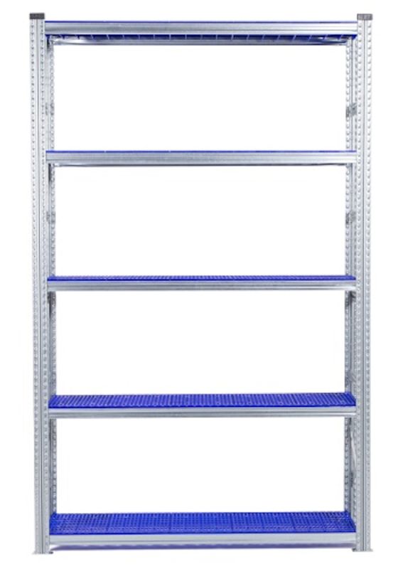 Teräshylly Flex, perusosa LxSxK 1576x400x2500 mm 5 kpl sinisiä hyllytasoja