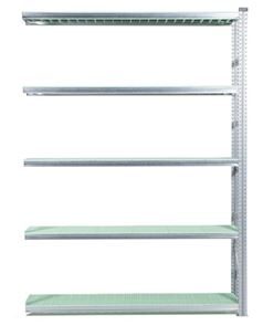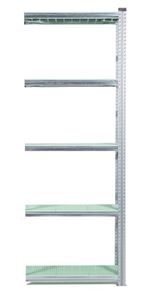 Teräshylly Flex, K 2500 mm jatko-osa, LxS 906x320 mm, 5 kpl vihreä hyllytaso pakastinympäristöön. Joustava hyllyjärjestelmä sinkittyä terästä, useita käyttömahdollisuuksia monenlaisiin työympäristöihin. Alhainen omapaino - suuri kuormitus, 135-350 kg/hyllytaso. Siirrettävät palkit, hyllyt mahdollista asentaa 33 mm välein. Hyllytasoja eri työympäristöihin. Helppo koota (ei pultteja tai muttereita). Voidaan käyttää molemmilta puolilta, ei tarvita ristikkoa. Päädyt toimitetaan koottuna, kantopalkit ja metallijalat sisältyvät jokaiseen yksikköön. Muoviset hyllytasot ovat rei’itetty, joten ne toimivat myös ympäristöissä, joissa on sprinklerijärjestelmä jolloin vesi valuu hyllytasojen läpi. Kaikki muoviset hyllytasot ovat elintarvikehyväksyttyjä, vihreät hyllytasot soveltuvat myös pakastinympäristöön.
