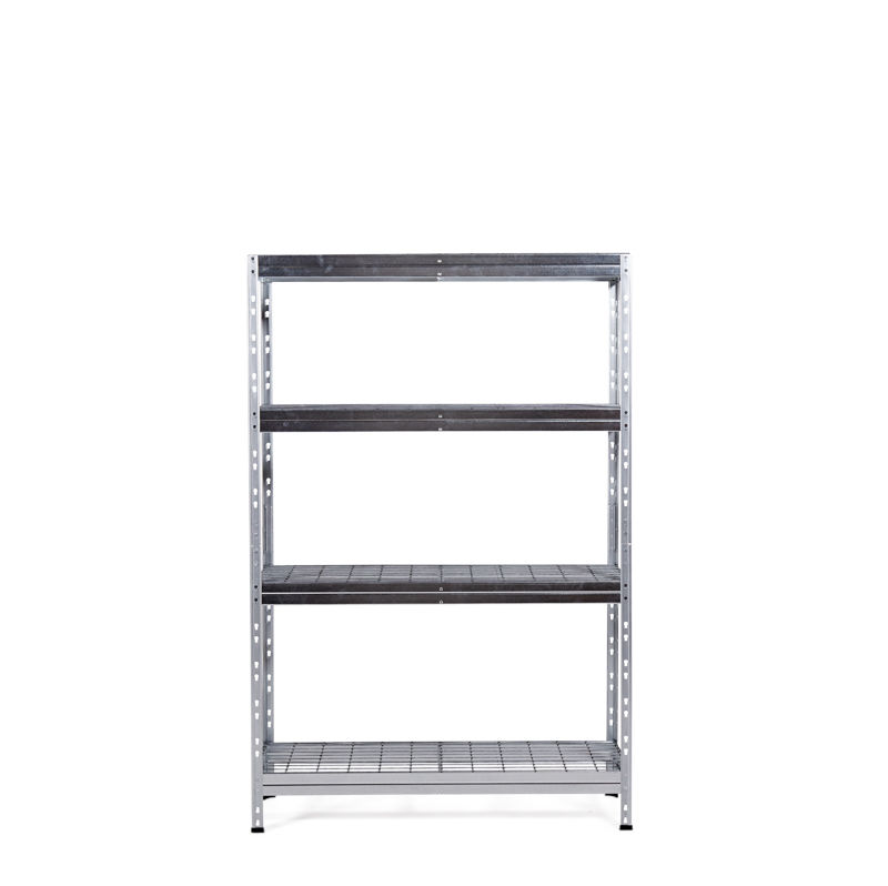 Varastohylly Glomma, LxSxK 1200x450x1800mm, 4 hyllytasoa. Vakaa, galvanoitu teräshylly galvanoiduilla teräslankahyllytasoilla. Helppo asentaa ilman ruuveja ja työkaluja. Koska hylly on kokonaan galvanoitu sopii se vaativiin ja kosteisiin ympäristöihin. Hyllyssä on vahvikepalkki hyllytasojen alla. Varastohylly voidaan asentaessa jättää myös kahdeksi puolikkaaksi, eli voit saada yhdestä hyllystä myös kaksi puolikorkuista hyllyä. Kokonaisia hylly-yksiköitä ja hyllyjen jatko-osia voidaan yhdistää kiinnikkeillä. Kaikki hyllytasot ovat siirrettäviä.