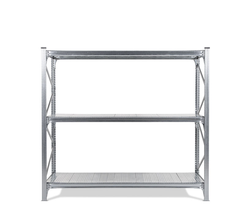 Varastohylly Maxi, perusosa, LxSxK 2186x1000x2000 mm, galvanoidut hyllytasot. Varastohylly Maxi on joustava hyllyjärjestelm, joka on valmistettu galvanoidusta teräksesti. Hylly sopii hyvin tilaa vieville tavaroille. Alhainen omapaino - suuri kuormitus 450-500 kg/hyllytaso. 4 eri syvyyttä, 600 – 1200 mm. Siirrettävät palkit, jotka voi asettaa 33 mm:n välein. Hyllytasot ovat valmistettu galvanoidusta teräksestä. Helppo koota (ei pultteja tai muttereita). Voidaan käyttää molemmilta puolilta, ei tarvita ristikkoa. Päädyt toimitetaan koottuna, kantopalkit ja metallijalat sisältyvät jokaiseen yksikköön. Korkeus 2000 / 2500 mm.