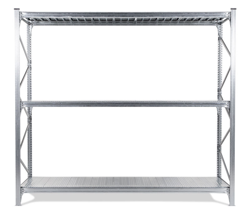 Varastohylly Maxi, perusosa, LxSxK 2786x1000x2500 mm, galvanoidut hyllytasot. Varastohylly Maxi on joustava hyllyjärjestelm, joka on valmistettu galvanoidusta teräksesti. Hylly sopii hyvin tilaa vieville tavaroille. Alhainen omapaino - suuri kuormitus 450-500 kg/hyllytaso. 4 eri syvyyttä, 600 – 1200 mm. Siirrettävät palkit, jotka voi asettaa 33 mm:n välein. Hyllytasot ovat valmistettu galvanoidusta teräksestä. Helppo koota (ei pultteja tai muttereita). Voidaan käyttää molemmilta puolilta, ei tarvita ristikkoa. Päädyt toimitetaan koottuna, kantopalkit ja metallijalat sisältyvät jokaiseen yksikköön. Korkeus 2000 / 2500 mm.