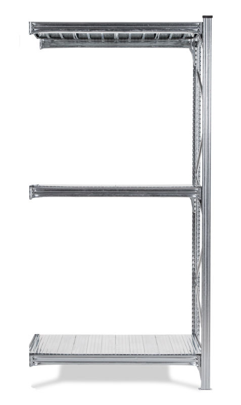Varastohylly Maxi, utbyggnadssektion LxSxK 1220x1200x2500 mm, galvanoidut hyllytasot. Varastohylly Maxi on joustava hyllyjärjestelm, joka on valmistettu galvanoidusta teräksesti. Hylly sopii hyvin tilaa vieville tavaroille. Alhainen omapaino - suuri kuormitus 450-500 kg/hyllytaso. 4 eri syvyyttä, 600 – 1200 mm. Siirrettävät palkit, jotka voi asettaa 33 mm:n välein. Hyllytasot ovat valmistettu galvanoidusta teräksestä. Helppo koota (ei pultteja tai muttereita). Voidaan käyttää molemmilta puolilta, ei tarvita ristikkoa. Päädyt toimitetaan koottuna, kantopalkit ja metallijalat sisältyvät jokaiseen yksikköön. Korkeus 2000 / 2500 mm.